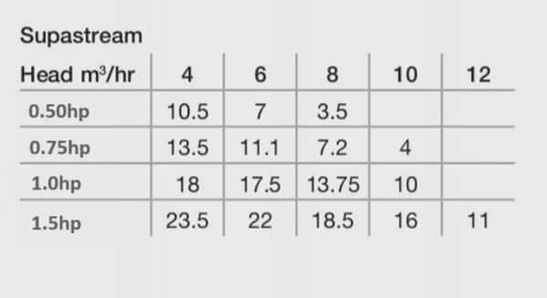 A: The Waterco Supastream is available in 0.5hp, 0.75hp, 1.0hp and 1.5hp.