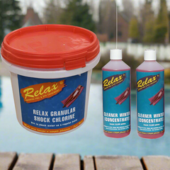 Swimming Pool Shock Chlorine products from HTH and Relax. top quality pool chemicals to help create safe, clean pool water. Fast next day delivery